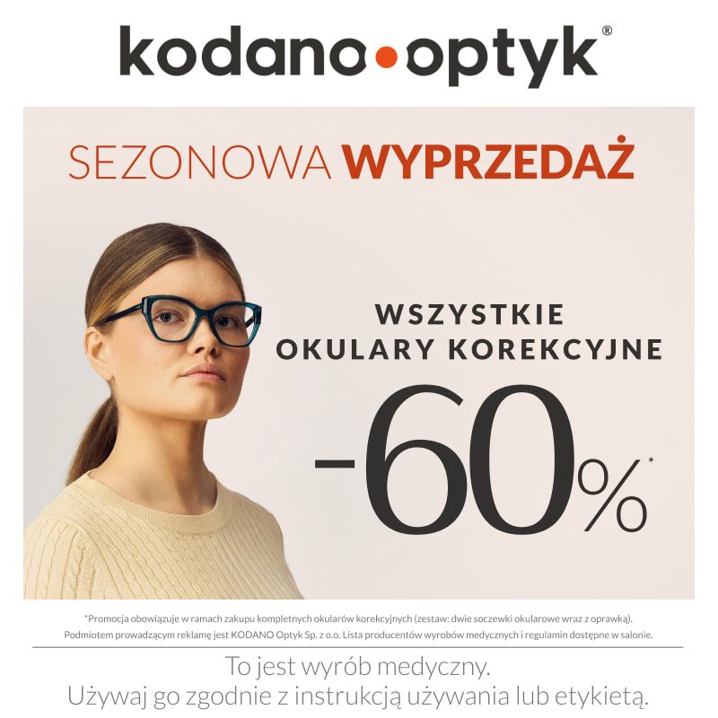 Odwiedź salon KODANO Optyk i skorzystaj z sezonowej wyprzedaży! Teraz WSZYSTKIE okulary korekcyjne aż 60% taniej!