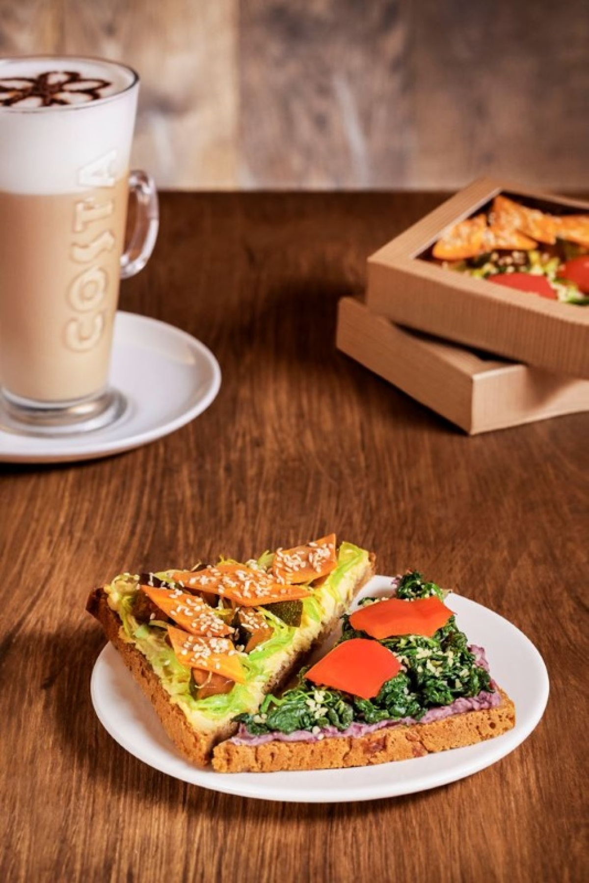 Dla głodomorów COSTA COFFEE przygotowała także wyjątkowe przekąski i zestawy lunchowe. Do stałej oferty m.in. sałatek, sycących tortilli czy naleśników dołączyły smakowite nowości w postaci rogali wieloziarnistych z kurczakiem lub pasztetem, które świetnie sprawdzą się, jako dodające energii śniadanie. Chrupiące pieczywo, dodatek warzyw i aromatycznych przypraw, a do tego dostępność w lżejszym o 2 zł zestawie z kawą to zdecydowanie najlepszy wybór. COSTA COFFEE nie zapomniała także o ofercie dla wegetarian. Pierwsze skrzypce gra w niej kanapka razowa z hummusem, pastą z fasoli, plastrami marchewki, papryką, szpinakiem oraz cukinią.