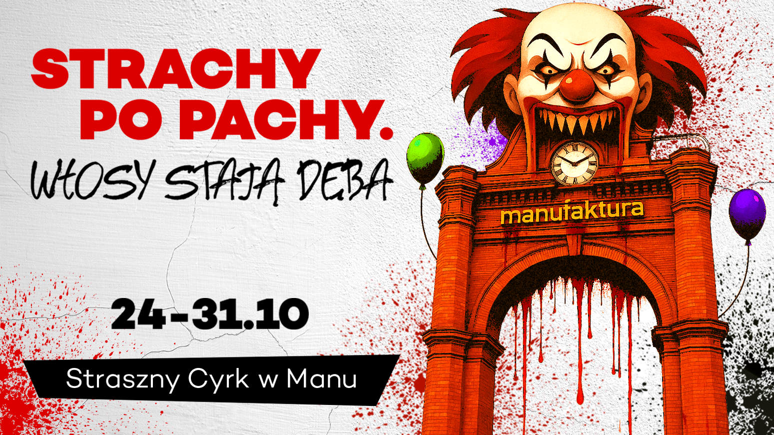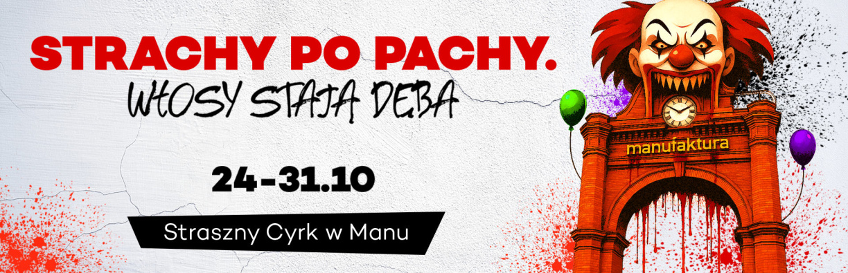 Od 24 do 31 października 2025 rynek Manufaktury zamieni się w niezwykłe, pełne grozy widowisko! Z okazji Halloween zapraszamy wszystkich żądnych emocji do Strasznego Cyrku – wyjątkowego wydarzenia, które na długo zapadnie Wam w pamięć.